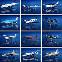 Breite Auswahl von Flugzeugen, angefangen von Flugzeugen der allgemeinen Luftfahrt über Airliner, Helikopter, Militärjets, historische Flugzeuge bis hin zu Segelflugzeugen.