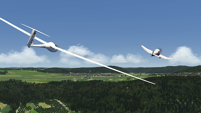 Aerofly FS now fully simulates glider aerotows! With this new feature you can practice flying behind the towplane, rope slack, rope breaks as well as normal, cross and tail wind launches and a lot more. Aerotow is available on all ruwnays longer than 400m or on dedicated launch locations on custom airports.