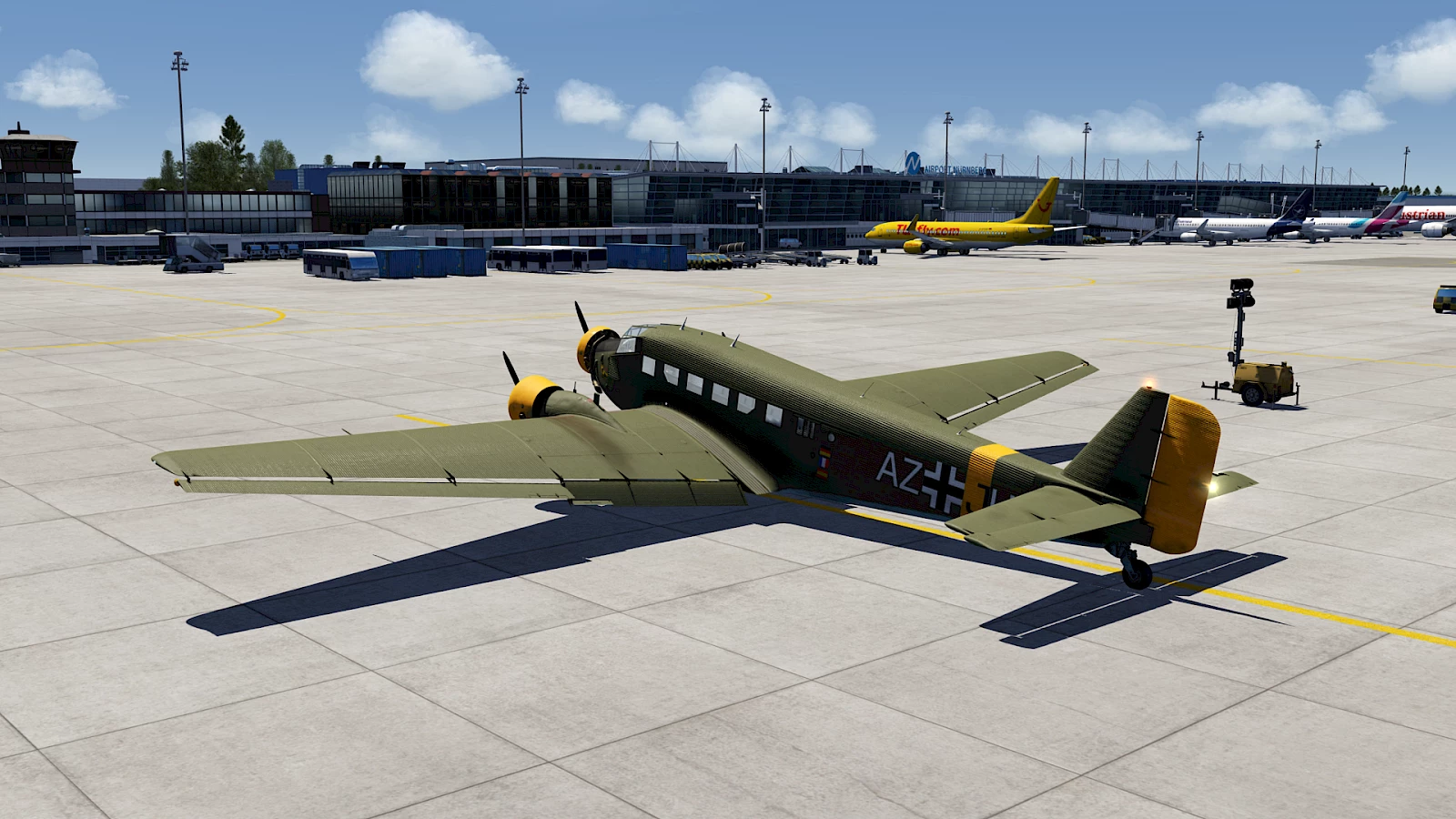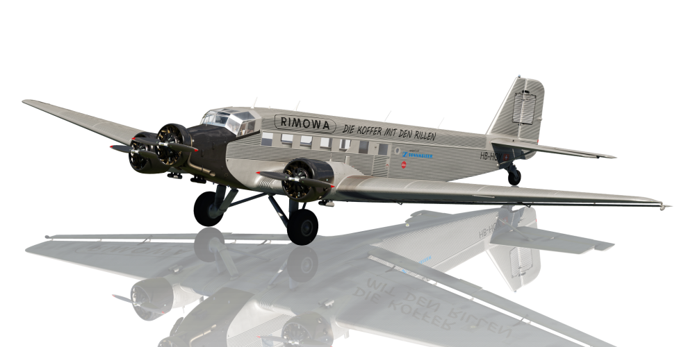 The Junkers Ju 52/3m is the three-engine version of the Ju 52/1m. The Junkers Ju 52 made its maiden flight as a three-engine aircraft on 7 March 1932. It shaped civil air traffic like only a few other aircraft and is today one of the best-known historic aircraft of any German production. Characteristic for this aircraft is, like many Junkers aircraft, the corrugated sheeting. The Ju 52 served the German Luftwaffe in World War II as a transport aircraft and was particularly convincing because of its low landing speed. A total of about 4,800 aircraft of this type have been manufactured.