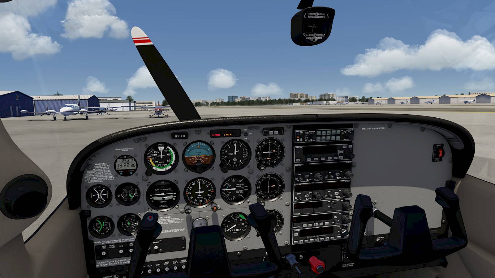 The single-engine, four-seater Cessna 172 Skyhawk is in production since 1956. With over 44,000 units it’s the most built aircraft in the world and therefore to be found on almost every airport. The good-natured flight characteristics make it an ideal training aircraft. Over the years many versions were developed, some with retractable landing gear or with floats for operation as a seaplane. The C172 SP is built since 1989 and is the only model in the Skyhawk line still in production after 2009. It has a 180 hp engine and a range of over 680 mi. The maximum cruising speed is 145 mi/h.
