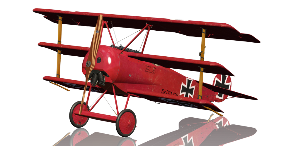 The Fokker Dr.I is a fighter aircraft of the First World War. It was used from 1917 and it achieved world fame by Baron Manfred von Richthofen (The Red Baron). Only 420 machines of this type were built. The Dr.I was very manoeuvrable and could rise quickly, but it also had to be well controlled. Often the pilots were overtaxed with the Dr.I and so it came to numerous crashes by pilot errors. The landing with this aircraft is particularly tricky. The narrow chassis and the high structure require extreme precision.