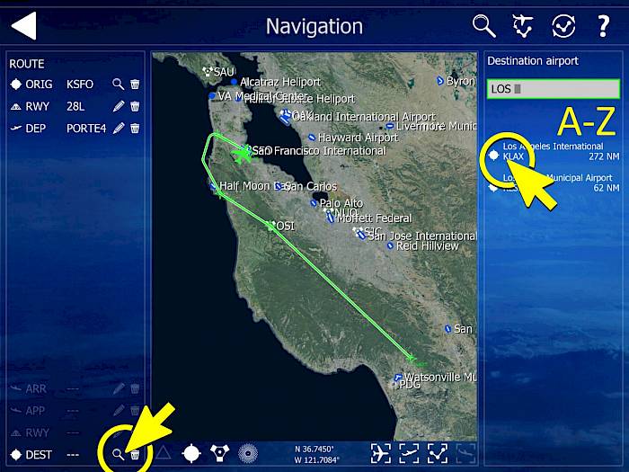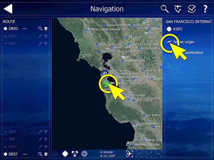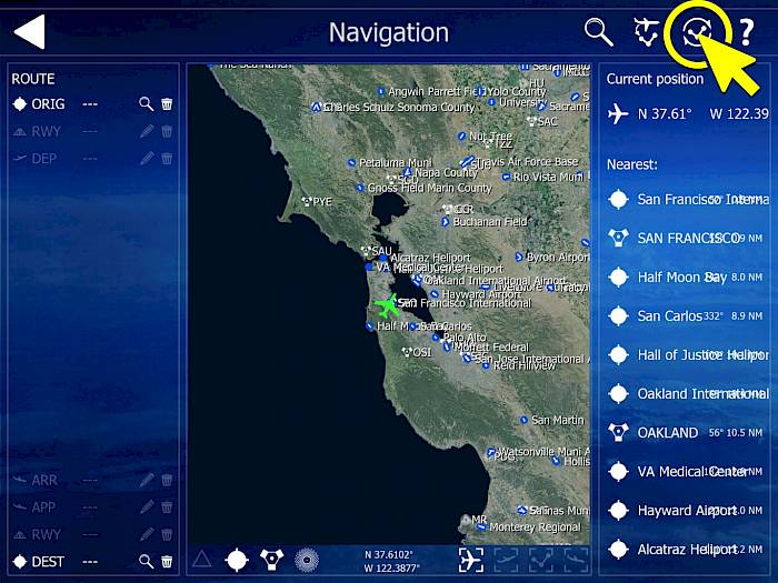 - From the main menu click the button “Navigation” to open the navigation flight planner.