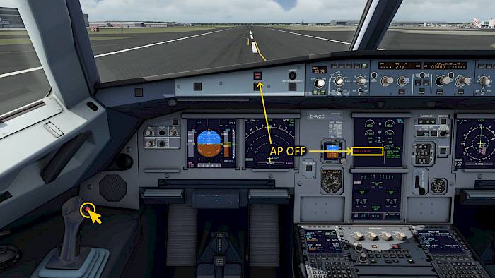 - Click the autopilot disengage button on the sidestick or yoke to turn off the autopilot
