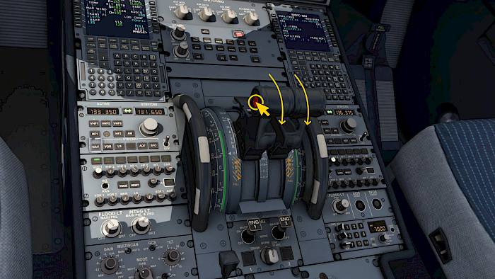 - Arm the auto-throttle by moving the A/T switches to the upper position or by pressing the A/THR button