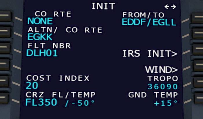 - Go to the INIT B page by pressing the arrow left/right buttons on the MCDU