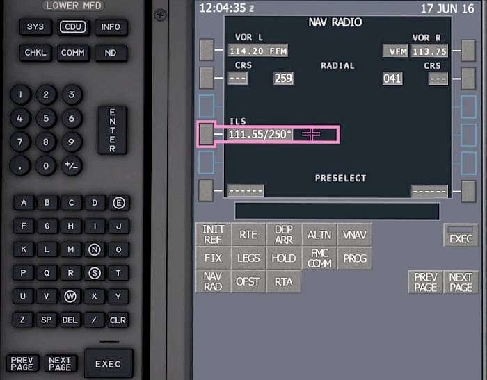 • You can also copy a frequency into your scratchpad by selecting the VOR L or VOR R or one of the PRESELECT fields with an empty scratchpad.