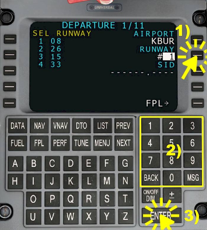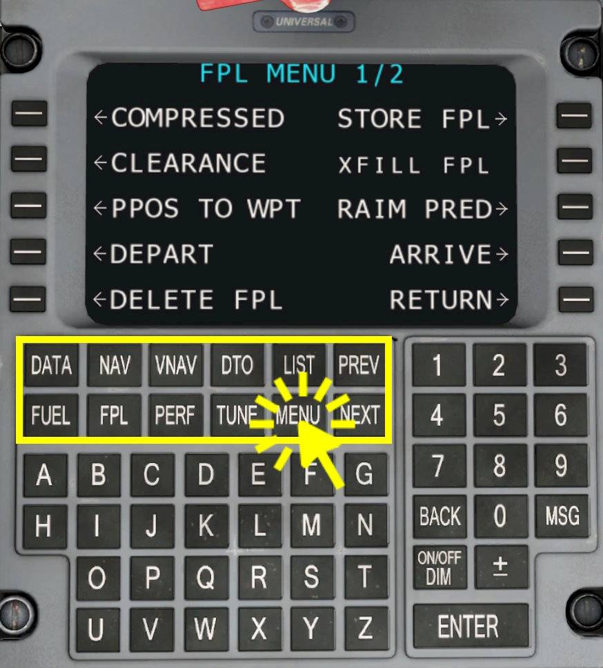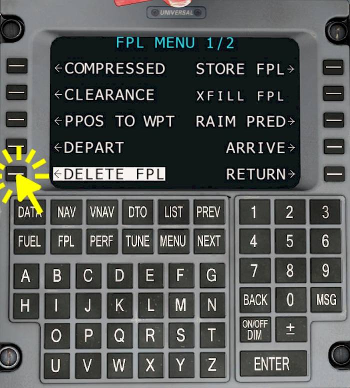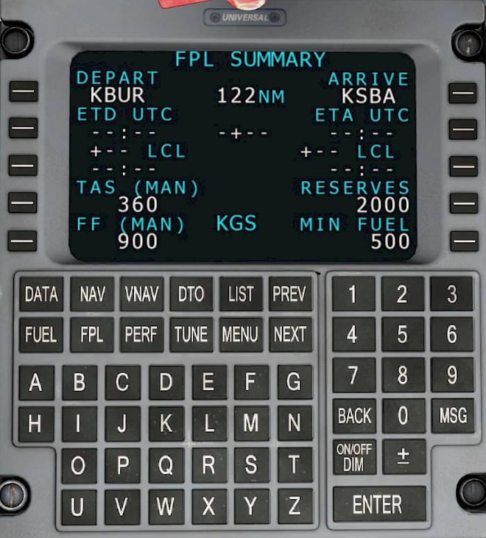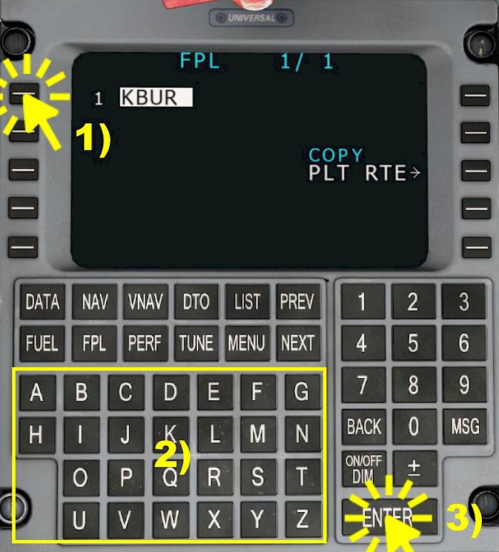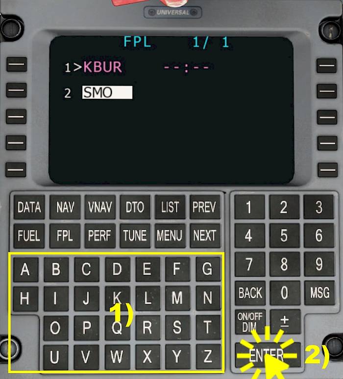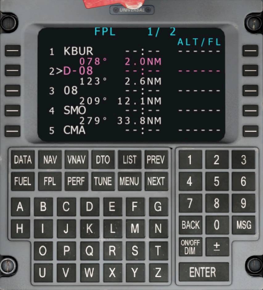The Universal UNS-1 has no scratchpad line like the Airbus MCDU, C90GTx CDU or the Boeing CDUs, instead the values are typed in-place.