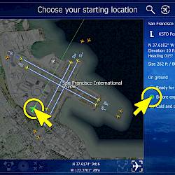 Learn how to use the location menu to start in the air, ready for takeoff, on final approach or parked on the ground.