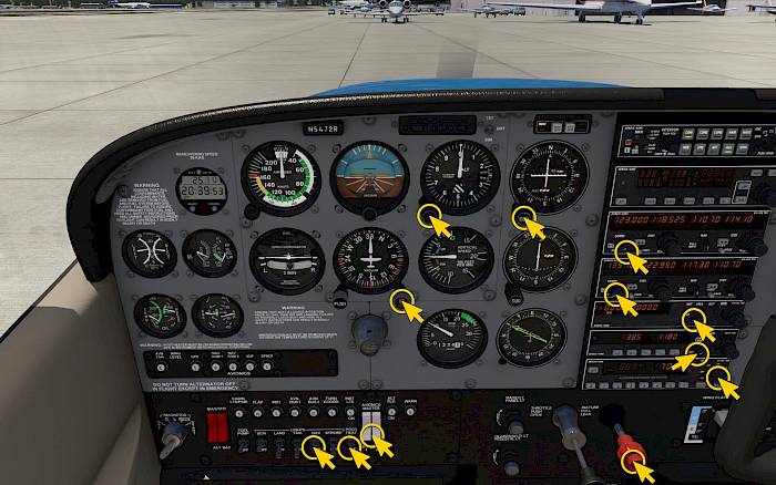 In this cockpit introduction tutorial we explain the instruments in the Cessna 172 and the control elements.