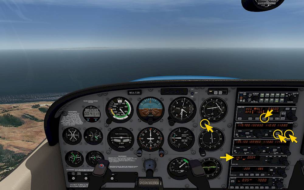 We’re starting this VOR navigation tutorial after reaching the cruise phase at 5000 feet.