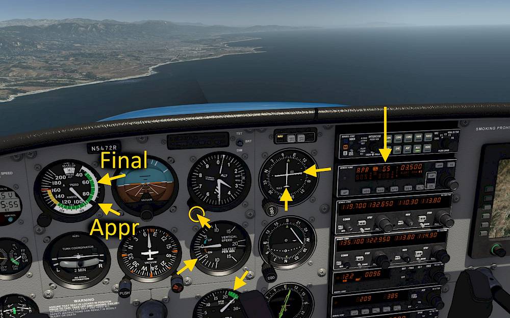 We’ll show you how to fly: From VOR to VOR, an ILS approach. But the Cessna 172 is also equipped with a DME and ADF so you can also fly VOR/DME approaches and NDB approaches
