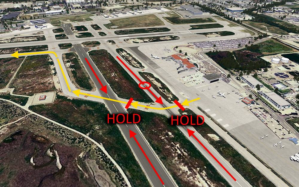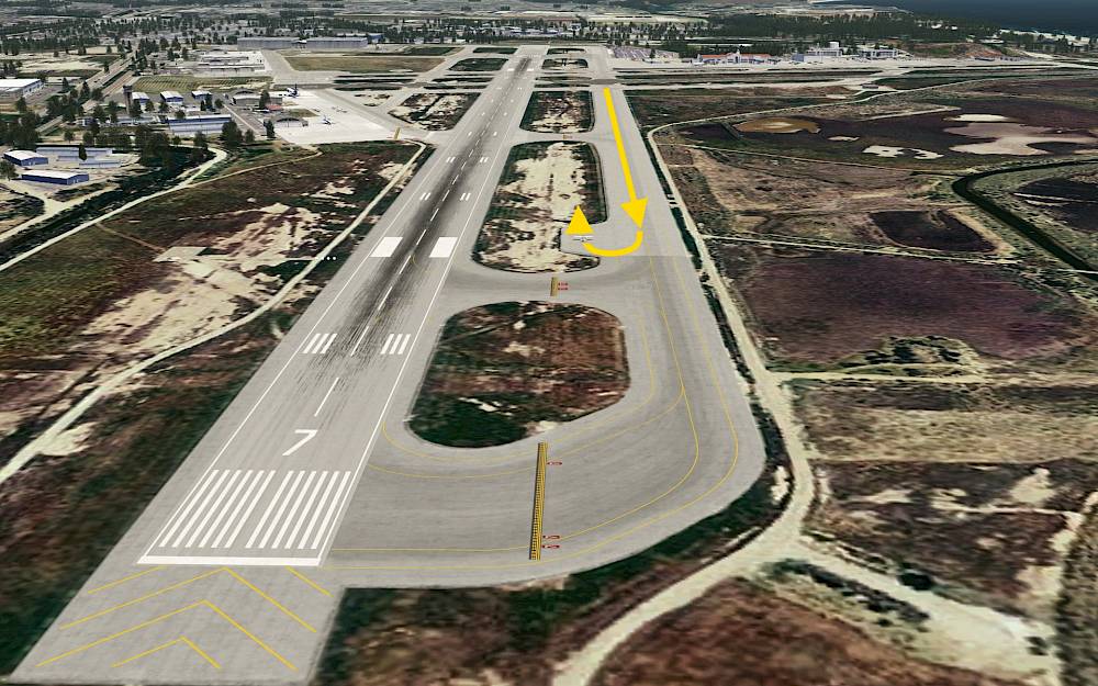 You can take the same route we came from and cross the two runways at the end of the taxiway.