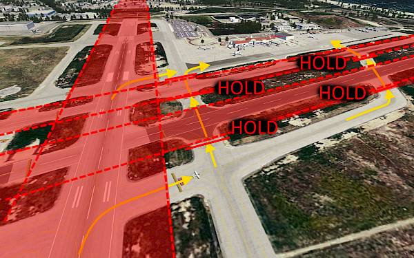 Make sure that before entering a runway that you hold short and look in both directions for any potential traffic about to takeoff or on final approach.
