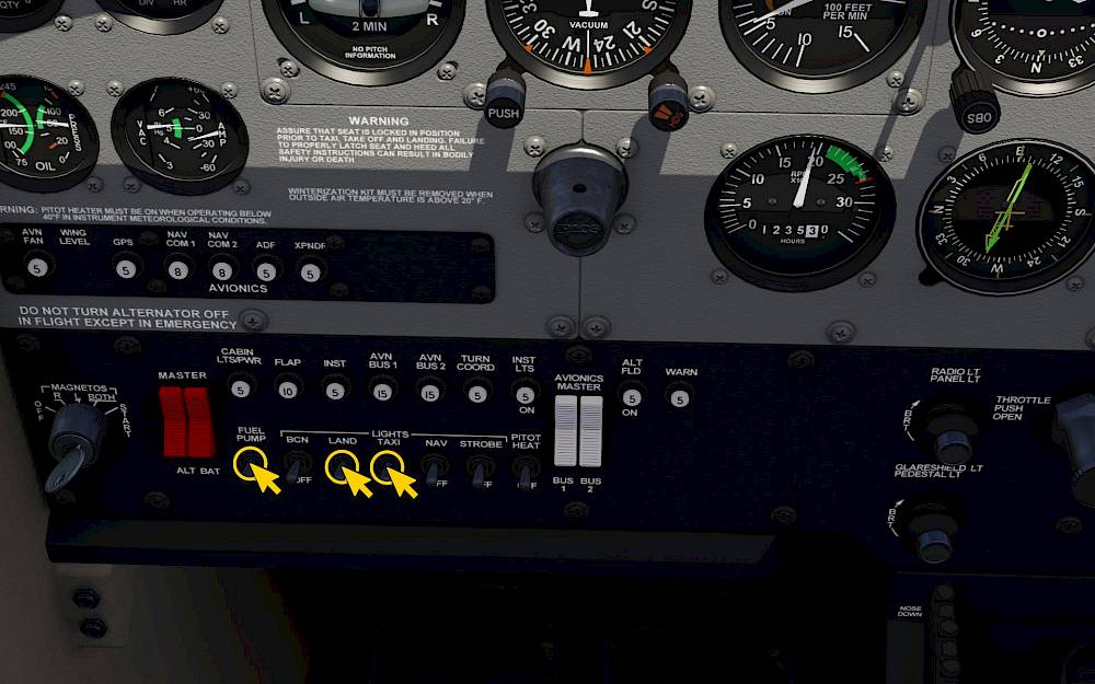 Note - We recommend reading the Cessna 172 Cockpit Introduction first if you are a complete beginner.