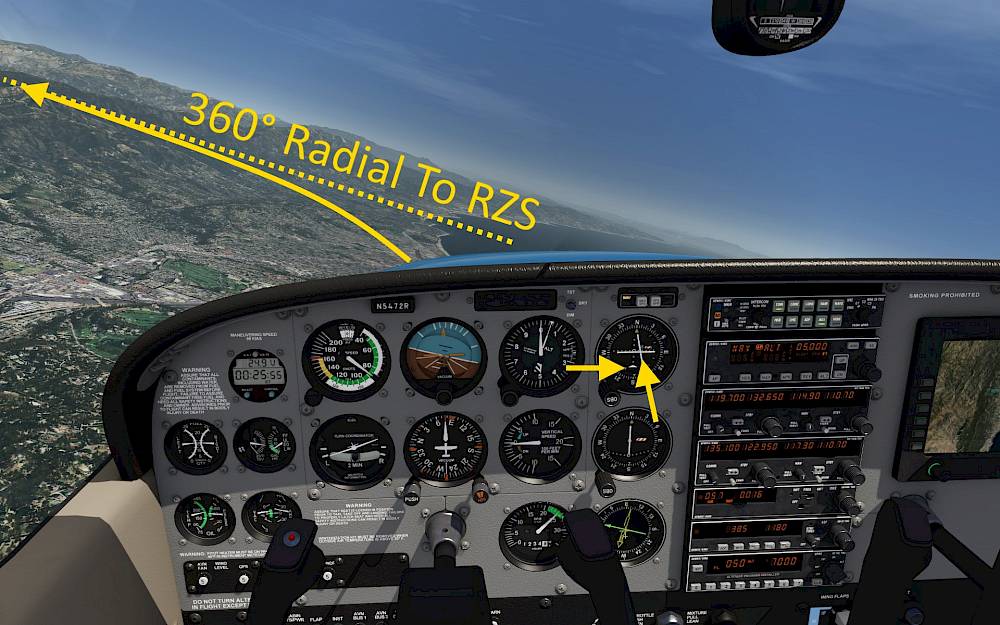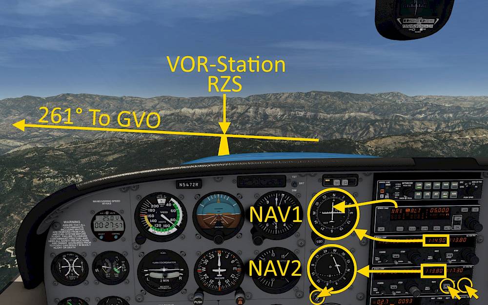 This is a crude way to fly to a station but helps you to fly around. But we can do even better than that. If you know from which direction you want to fly to the VOR station, e.g. along a valley and not through the mountains on the side you can set the desired course on the instrument and then follow the needle signals to stay on the selected radial.