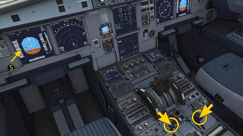 Note - You can cancel the A.FLOOR and TOGA LK modes by moving the thrust levers and setting them to idle or by pushing the instinctive auto-thrust disconnect buttons on the thrust levers. A.FLOOR won’t trigger again until the stall has been recovered and a new stall occurs.