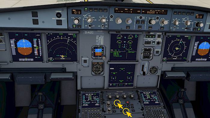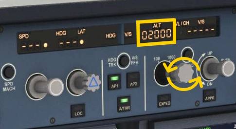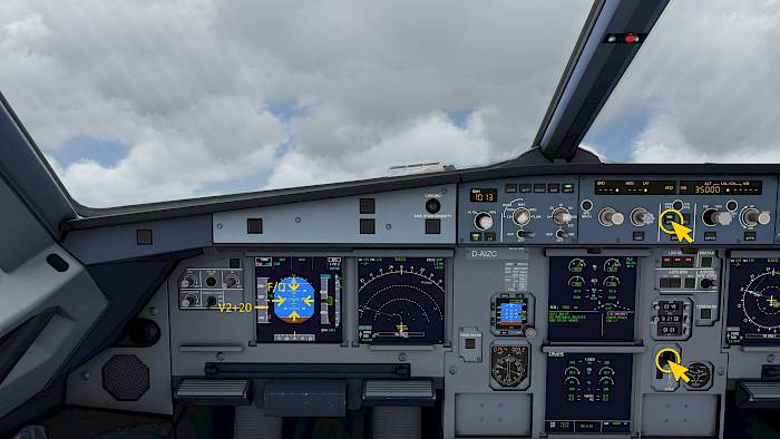 - Set the initial climb altitude by rotating the autopilot selected altitude, we’ll already set the cruise altitude of 35000ft now