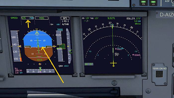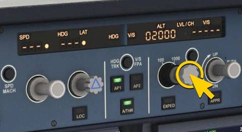 - Adjust the altitude and pull the vertical speed knob to set vertical speed mode