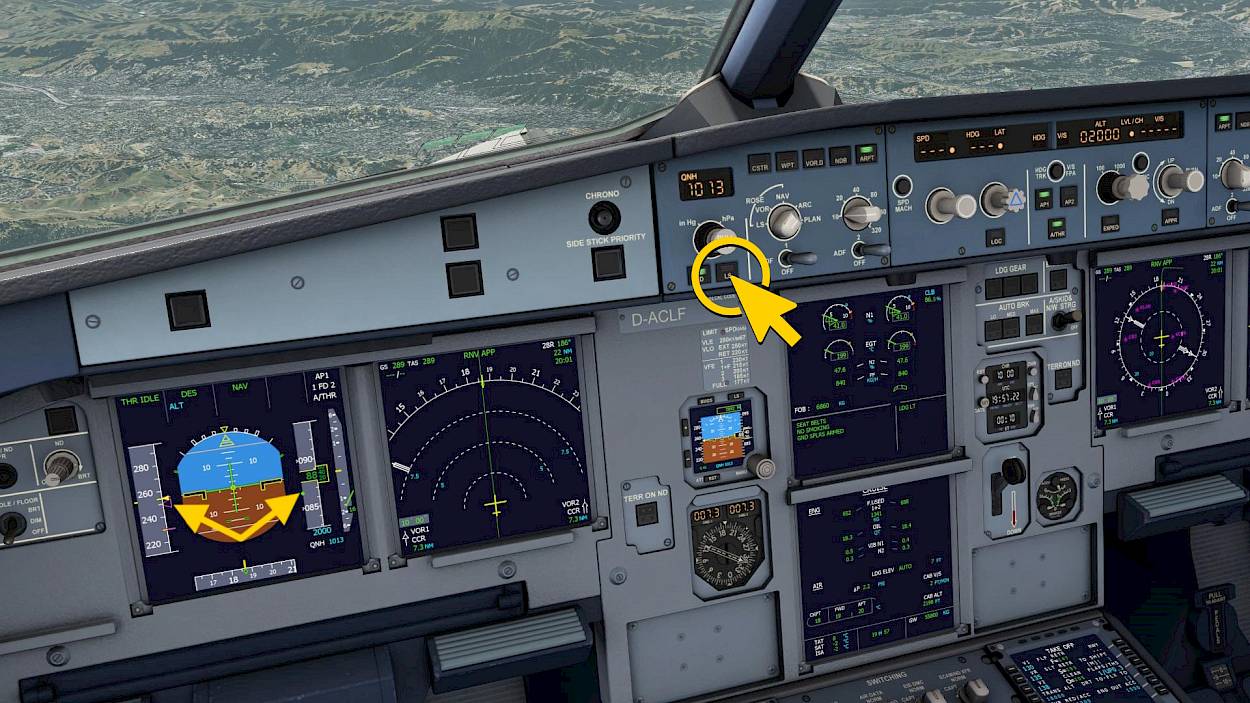 - If the autopilot tripped off push the instinctive takeover-button on the side-stick to cancel the warning and to take manual control of the aircraft