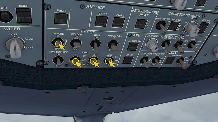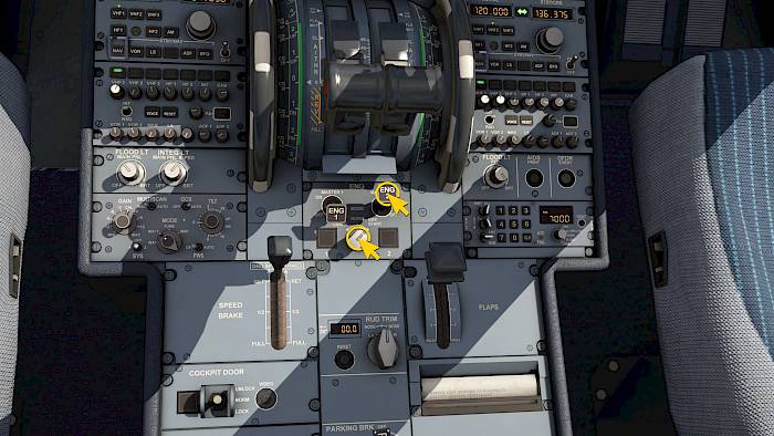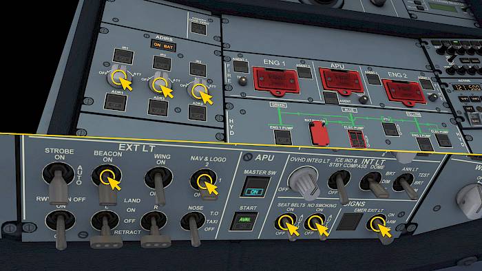 - Check that all fuel pumps are on, that the APU is running and that APU BLEED is turned on