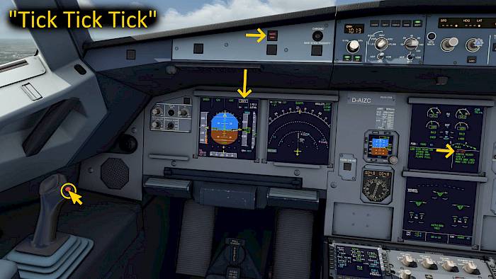 When you hear a “Tick Tick Tick” (Triple Click, Triple Ticking sound) in the cockpit then the autopilot is trying to get your attention. Look at the flight mode annunciator (FMA) and check if any mode or indication is boxed in white or amber.