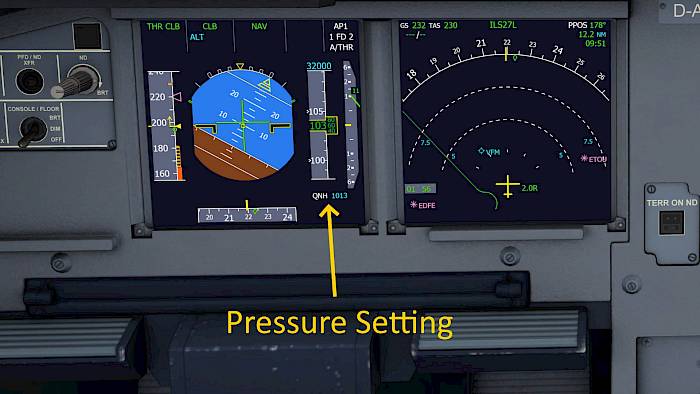 - Push the pressure setting knob on the EFIS control panel to set QNH barometric reference