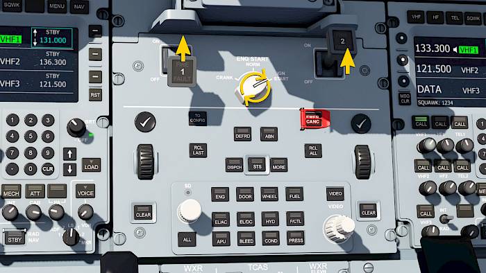 We’re starting the engines one by one. We’ll start with engine 2 but you can also start engine 1 first.
