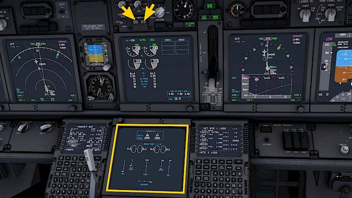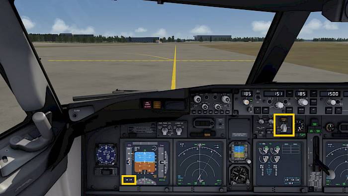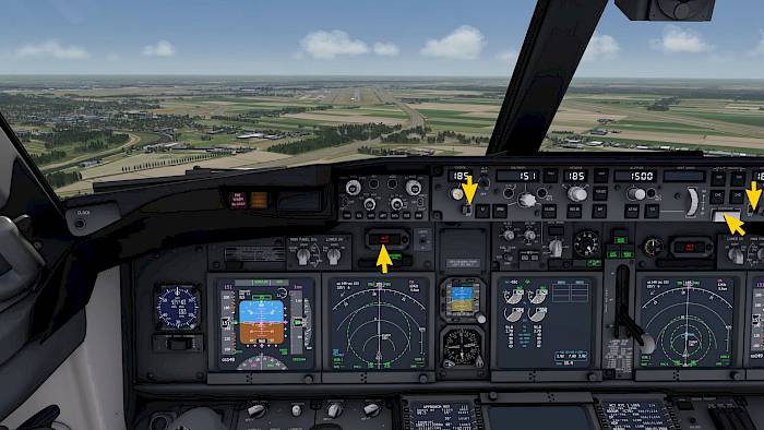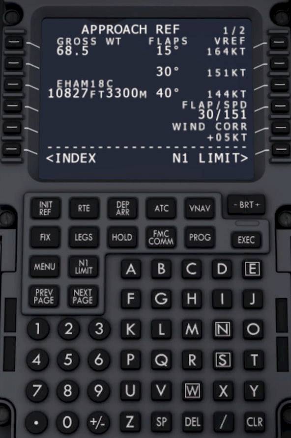 Because the runway 18C in EHAM is quite long and we need to vacate it towards the end anyway we can set up for a flap 30 approach with auto brake 2. With flap 30 instead of 40 we land a little bit faster but we also use less fuel on approach and we are quieter.