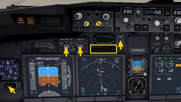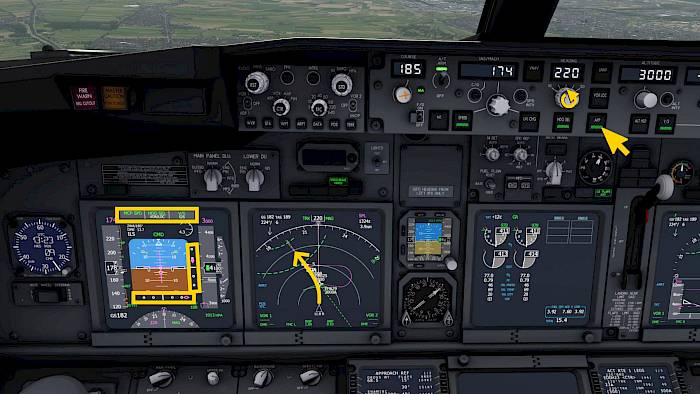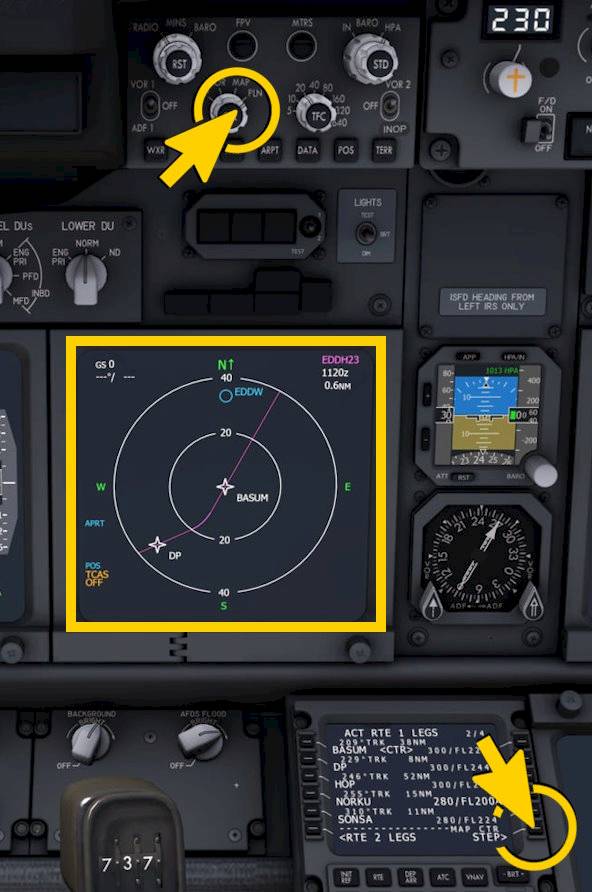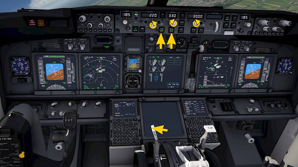 We could let the autopilot fly that with LNAV/VNAV but where is the fun in that :-) Instead we will break off the arrival and use manual heading vectors to position us for the approach. In this tutorial we’ll show you a few tricks that makes this easier.