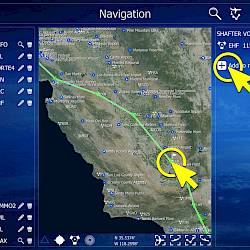 For our tutorial flight the PFD should show “ICFN” on the legend to the right of the display, the course of 250° should be set automatically.