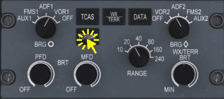To confirm we receive the ILS on our side as well (NAV1 receiver) we can use a little trick in the Q400. We have the option to display the localizer deflection on our MFD. To so so we have to hold down the “FORMAT” button on the EFIS control panel for one second.