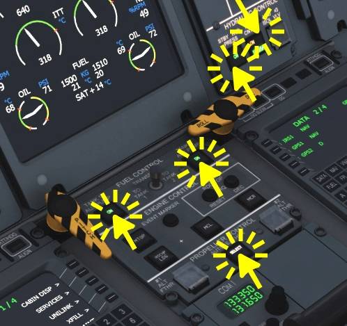 If you have selected the “Ready for taxi” configuration then your engines should already be spinning. If you selected the “Before engine start” setting however we now need to start the engines.
