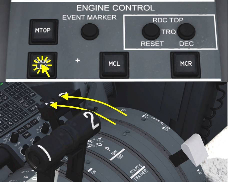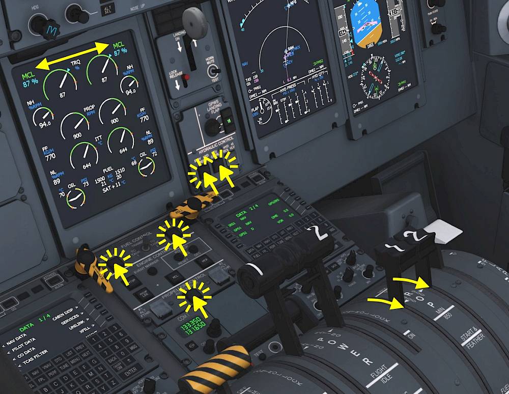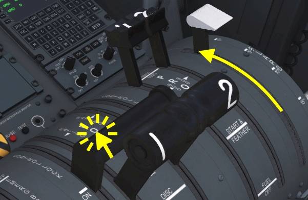 | 5 | Pedestal | Throttle Quadrant | PROP LEVER 1&2 | START&FEATHER | Start 30s cool down timer |