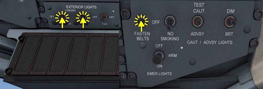 | 3 | Overhead | EXTERNAL LIGHTS | APPROACH | ON | Below 10,000 ft |