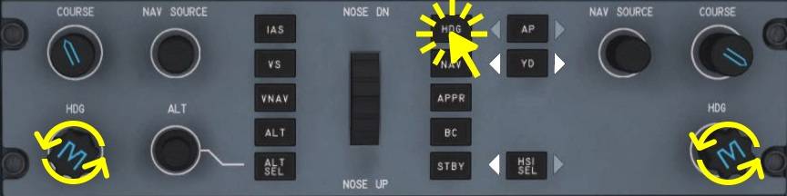 At this point we are not going to engage LNAV, instead we are going to use HDG SEL and the departure runway heading for takeoff.