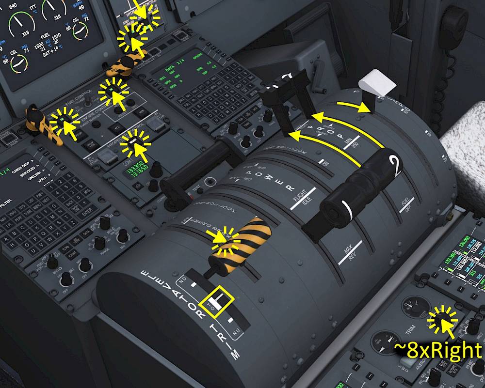 The next part will be quite stressful and there is a lot to do in a brief period of time. Before attempting this read this section completely or pause your simulation if you try to follow it step by step. With practice the takeoff will get easier. At the beginning we’re going to summarize the actions we will perform in a second.