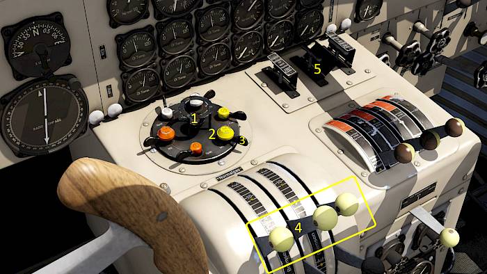 Directly in front of the two pilots are the main instruments. On the pilot’s side, these are:
