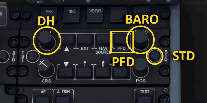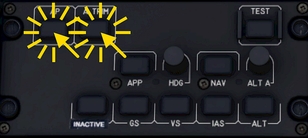 The autopilot APP button shows an amber “A” and the FMA shows a cyan “LOC” or “NAV”, depending on the source. The aircraft then captures the signal and follows it laterally and the button indication turns to a green “C” and the lateral mode on the FMA also turns green.