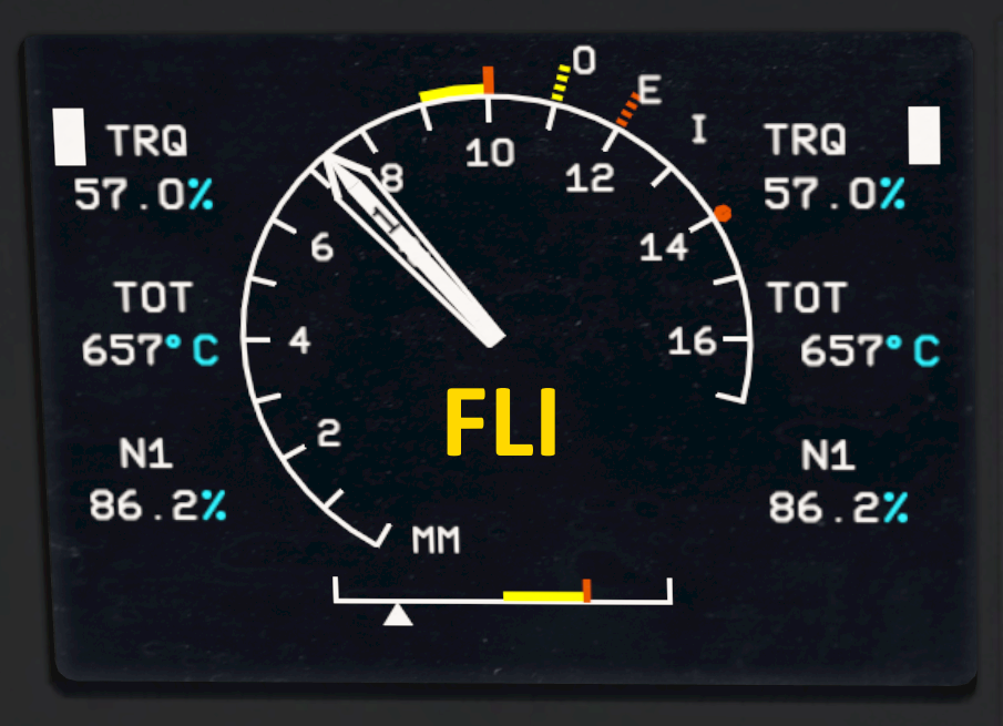 When both engines share the load the two FLI needles (1 and 2) join. When one engine is producing less power the two needles are split. This usually happens during and right after engine start. When this happens during flight one engine may have failed.