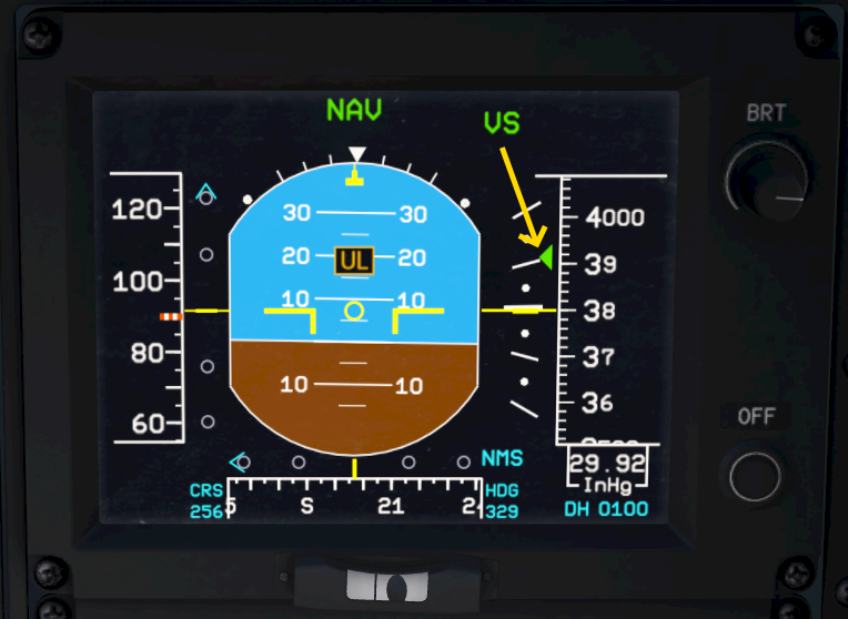 Note: Upper modes require an indicated airspeed above 60 knots in order to operate correctly. They usually disengage on their own when you fly slower than that and they can’t be engaged at low speeds.