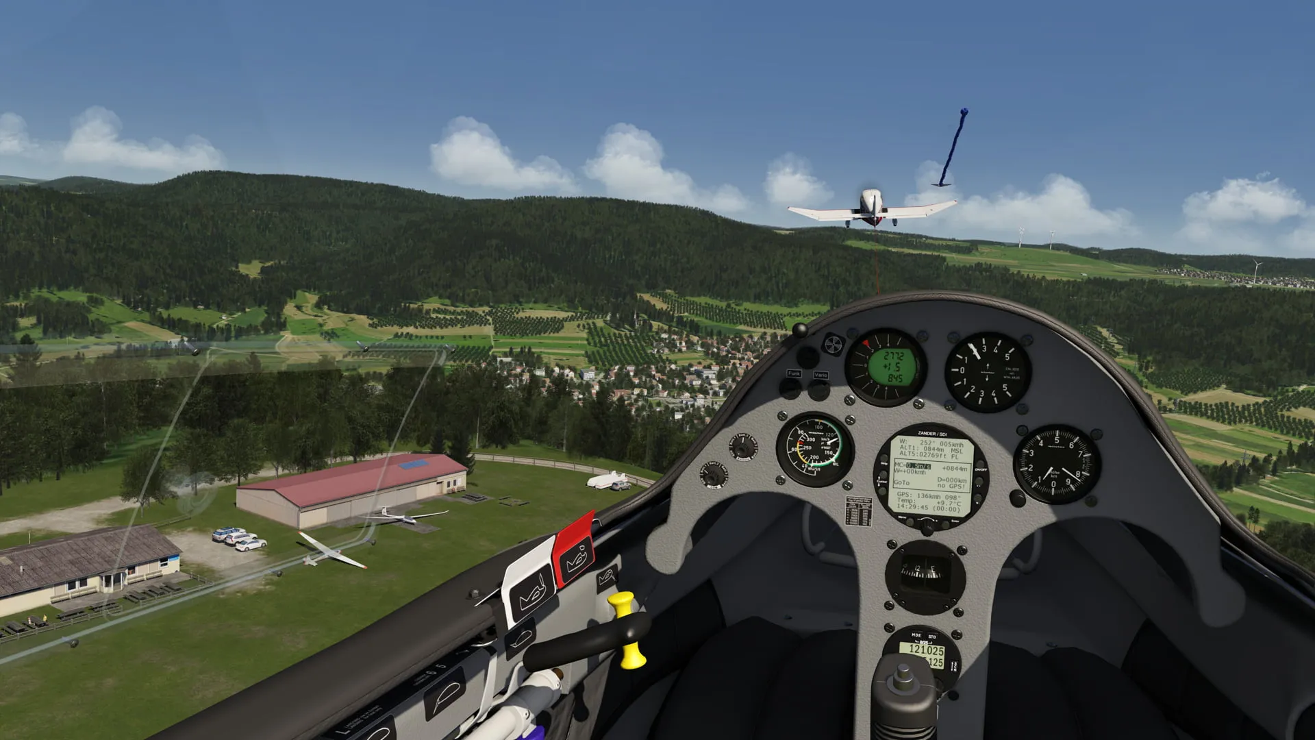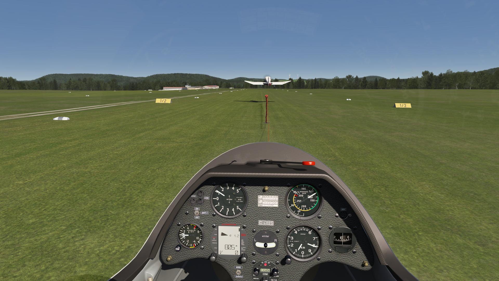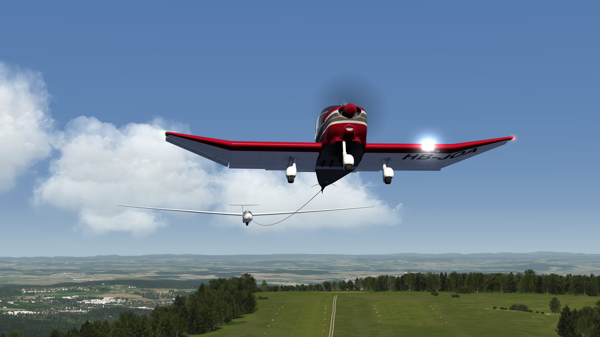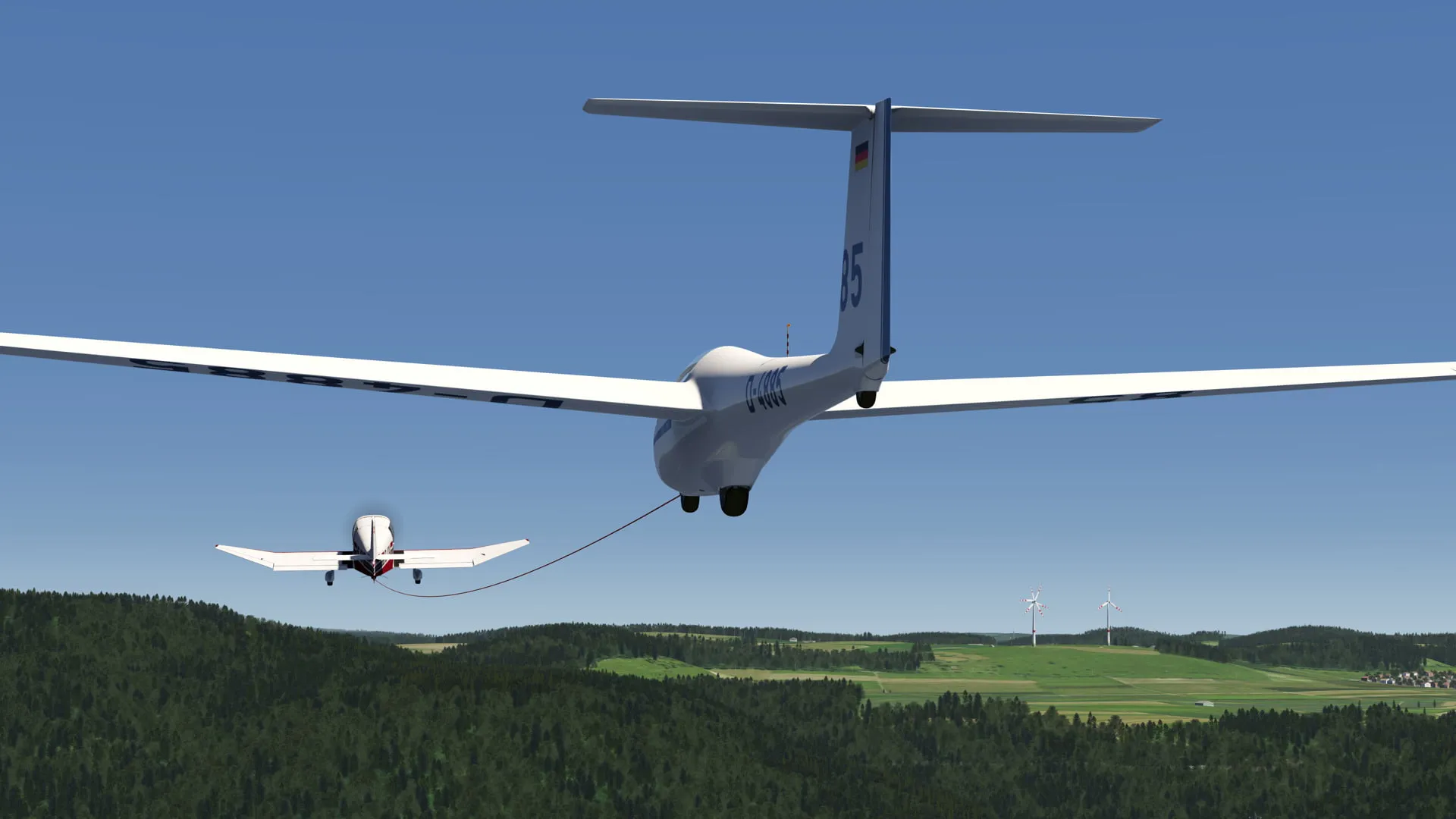 The fully simulated physics also allow you to influence the tow plane (actio = reactio). So if you are not flying behind the tow properly you can actually pull the tail of the towplane away with the forces on the rope which can lead to a crash, like in the real world.