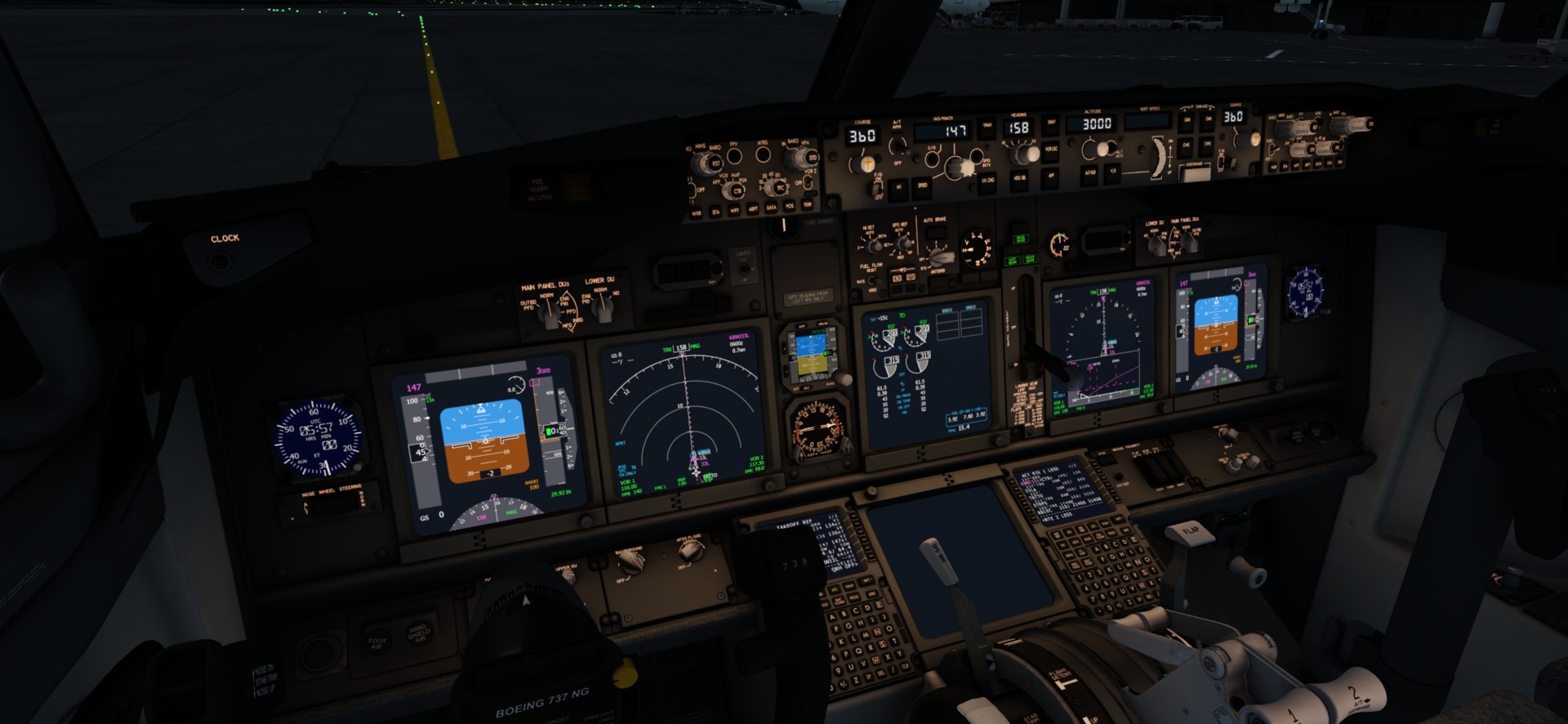 I noticed that the 737-800 cockpit turns green when flying at night. Is it possible to fix this?
