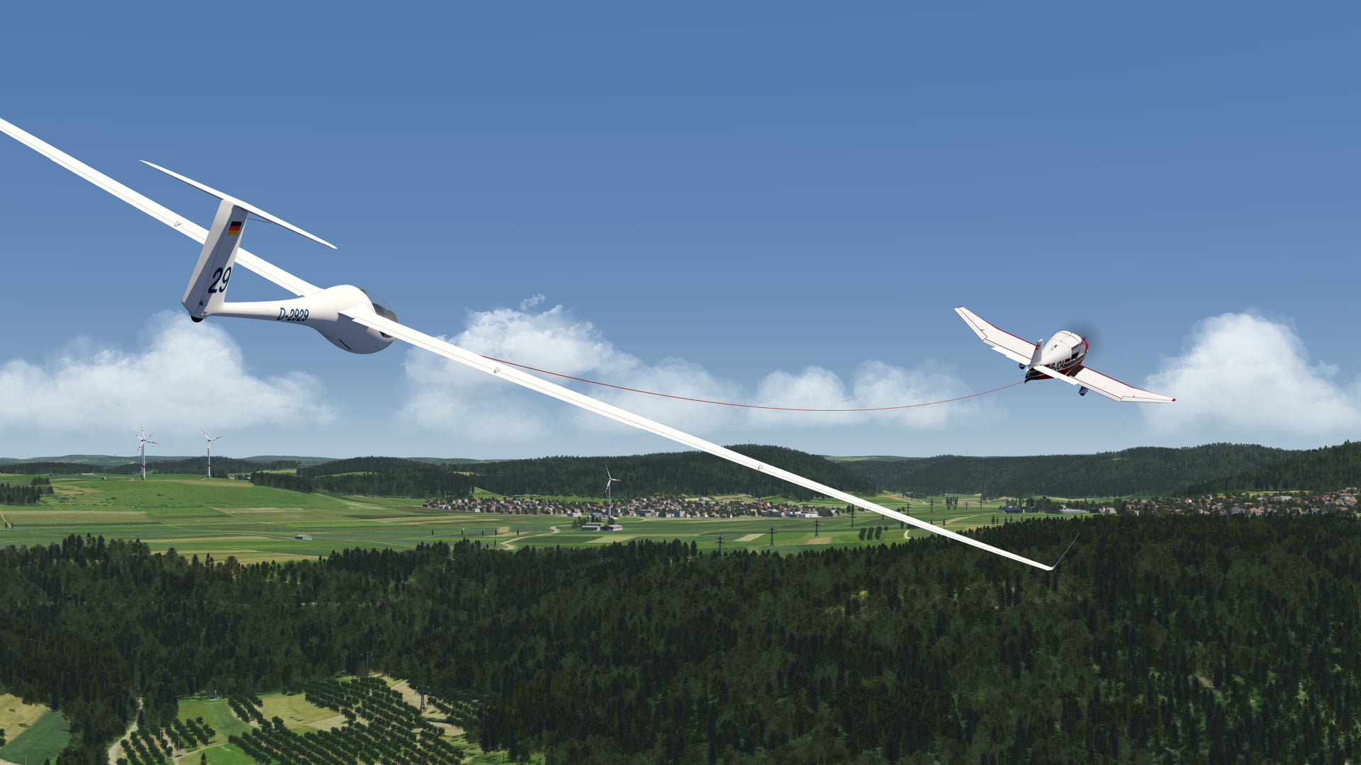 Of course winch launching won't be the only method to get in the air with the gliders. We now also fully simulate glider aerotows using the DR400 as a tow plane to pull any of our gliders in Aerofly FS.